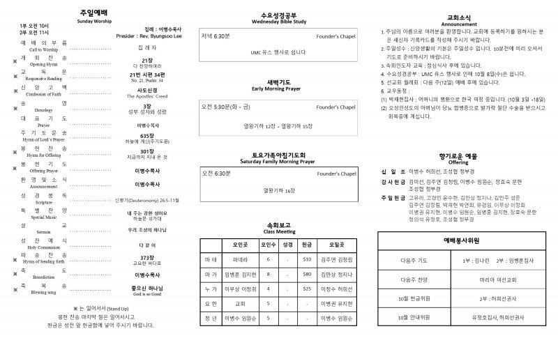 2025년 10월 5일(성령강림후 제17주, 추석)
