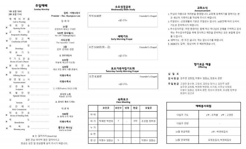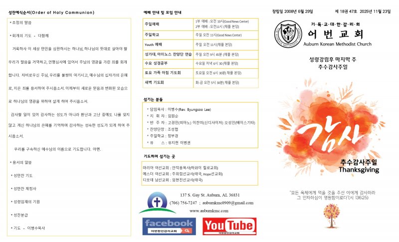 2025년 11월 23일(성령강림후 마지막 주, 추수감사주일)