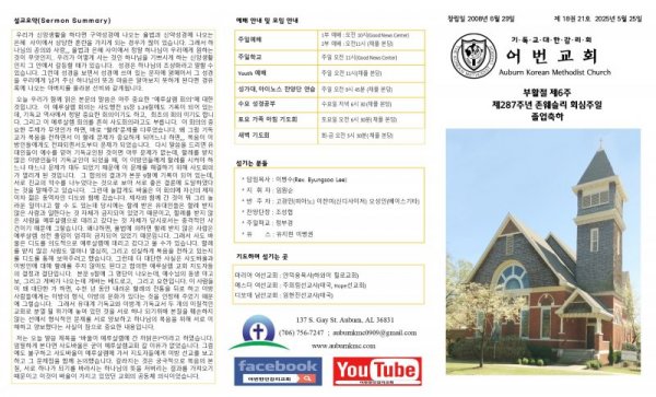 2025년 5월 25일(부활절 제6주, 제287주년 존웨슬리 회심주일, 졸업축하)