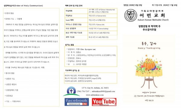 2024년 11월 24일(성령강림 후 마지막 주, 추수감사주일)